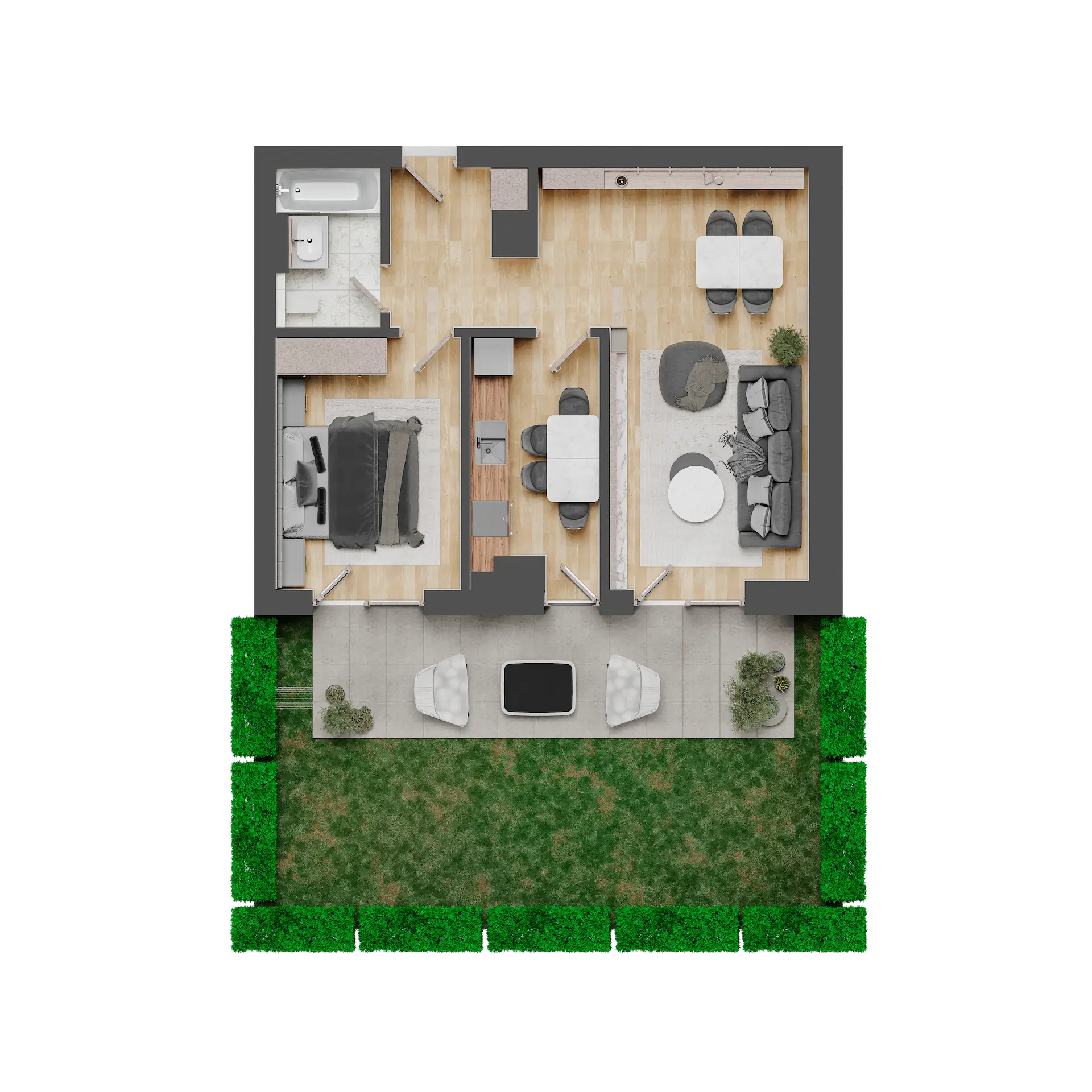 2 camere cu grădină