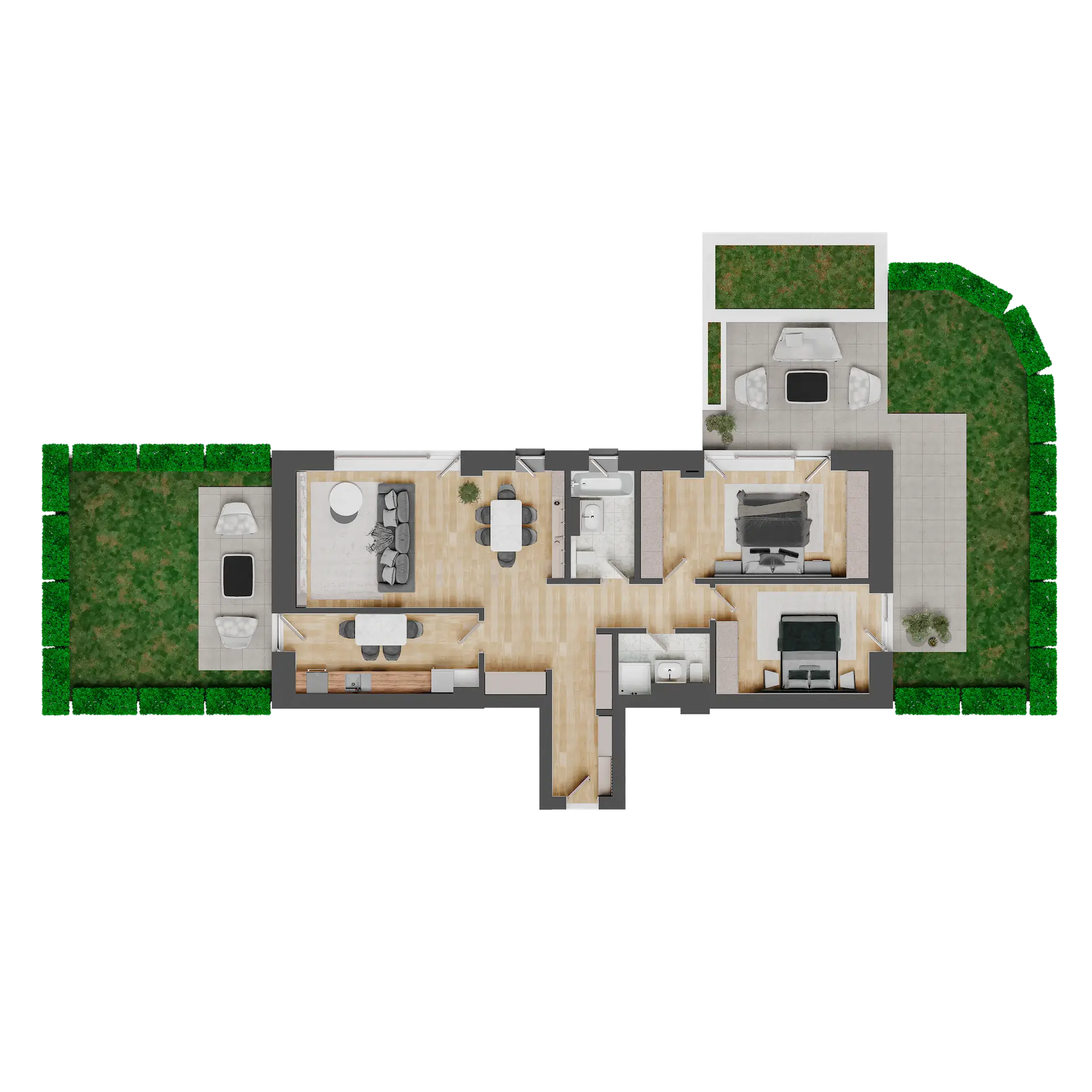 3 camere cu grădină
